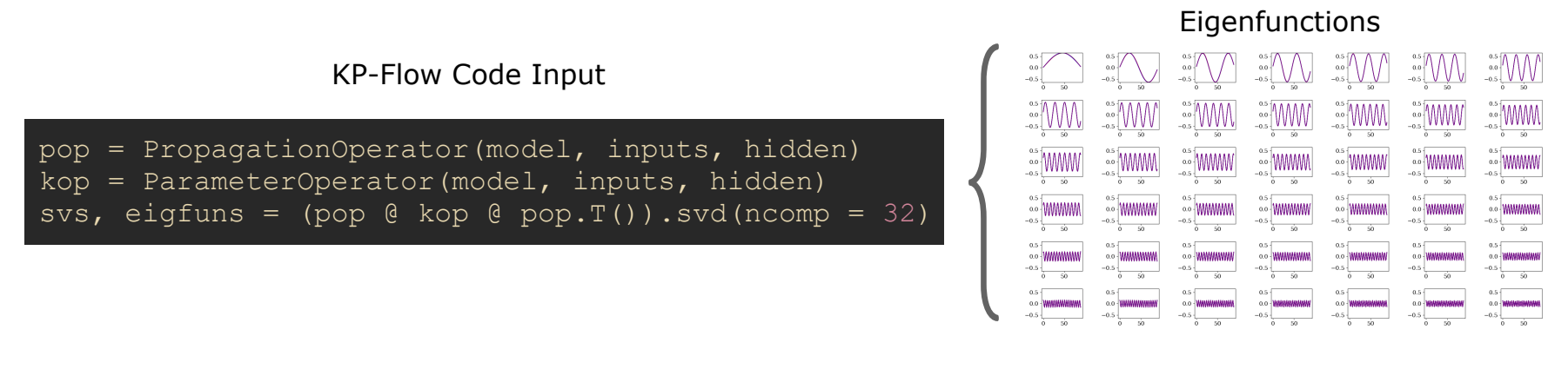 Fig 10 Example code snippet from my kpflow package and plotted (reduced) eigenfunctions.